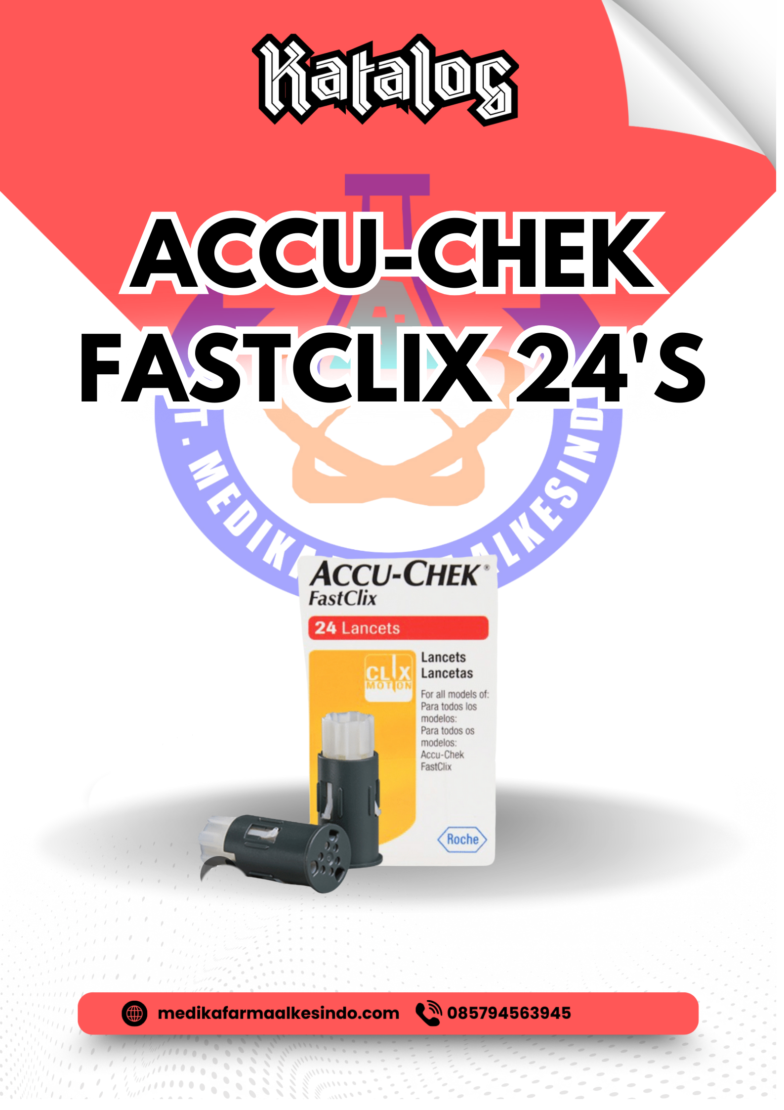 ACCU‑CHEK FastClix Lancets 24 PCS adalah paket 24 lancet steril sekali pakai khusus dirancang untuk digunakan dengan alat pencoblos Accu‑Chek FastClix Lancing Device. Produk ini memudahkan pengambilan sampel darah kapiler (misalnya dari ujung jari) untuk pemeriksaan gula darah secara cepat, aman, dan higienis.
