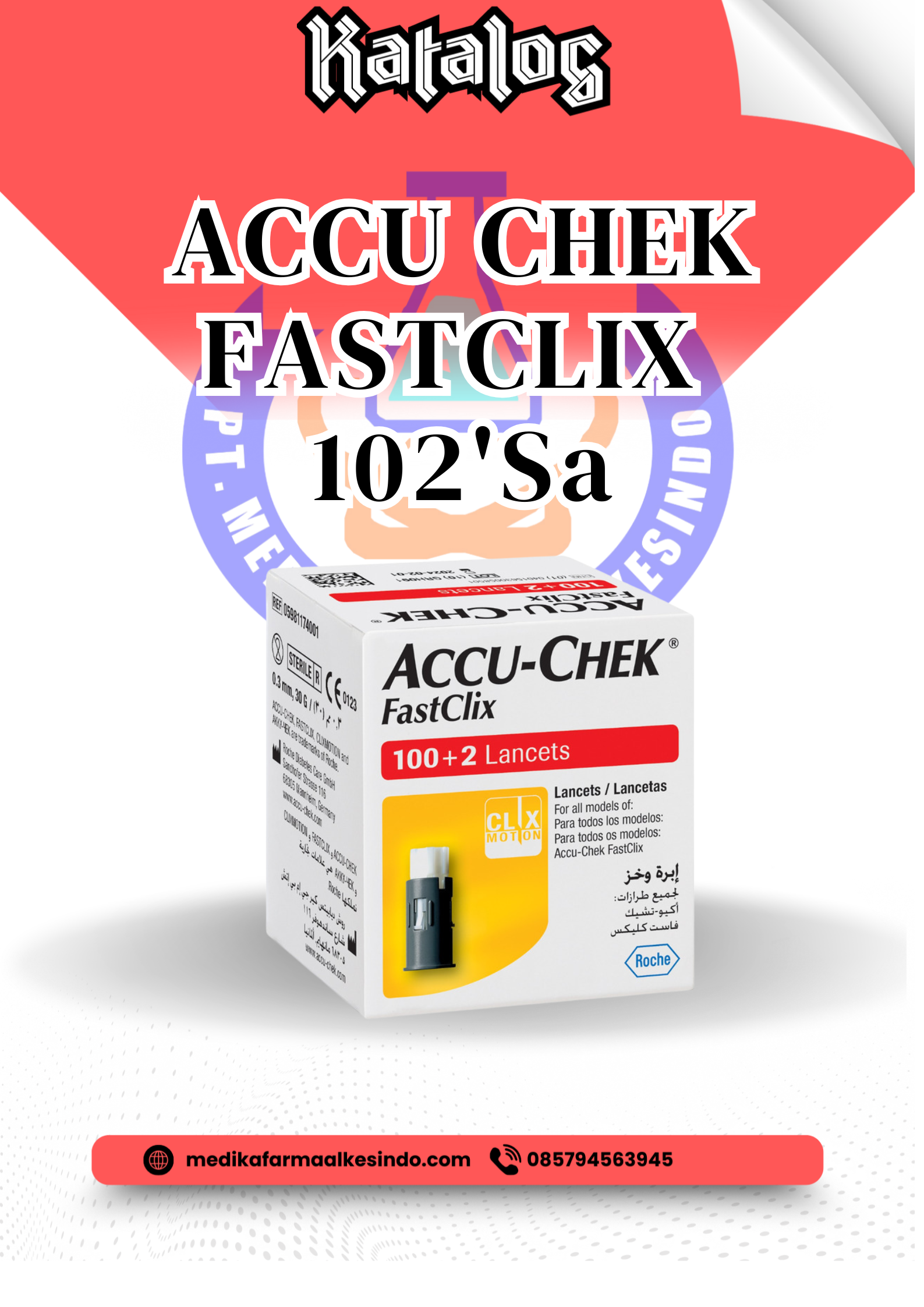 ACCU CHEK FastClix 102 adalah isi ulang lancet untuk pengambilan sampel darah yang dirancang khusus untuk digunakan dengan Accu Chek FastClix lancing device. Produk ini berisi 102 lancet yang sudah tersusun dalam 17 drum, sehingga pemakaian menjadi lebih praktis, higienis, dan tidak perlu memegang lancet satu per satu.