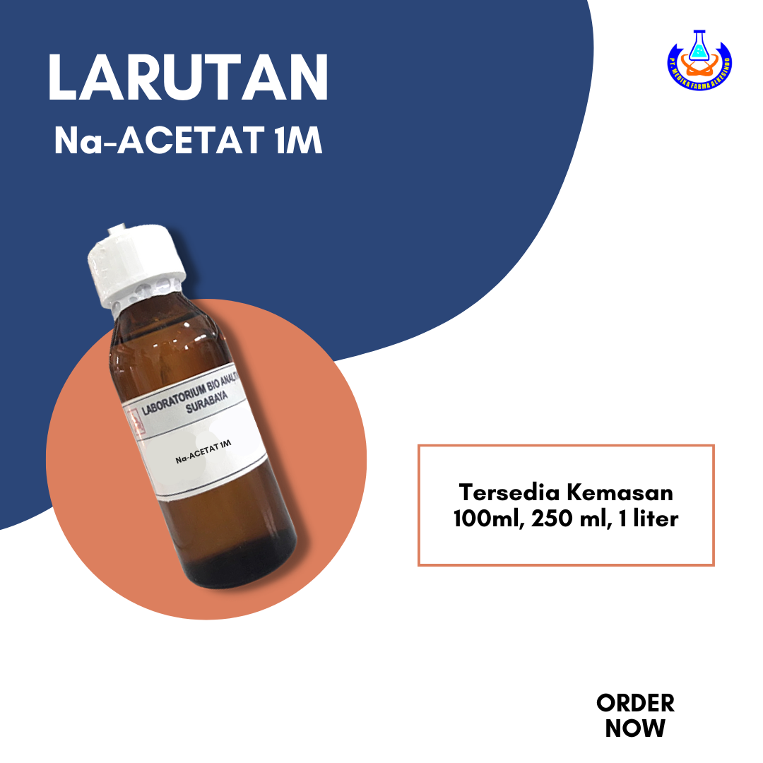 Larutan Natrium Asetat 1M adalah larutan siap pakai dengan konsentrasi 1 mol/L. Sangat cocok digunakan di laboratorium untuk aplikasi buffer/pengatur pH, penelitian kimia, biokimia, dan eksperimen lainnya yang memerlukan larutan Natrium Asetat dengan konsentrasi terukur.