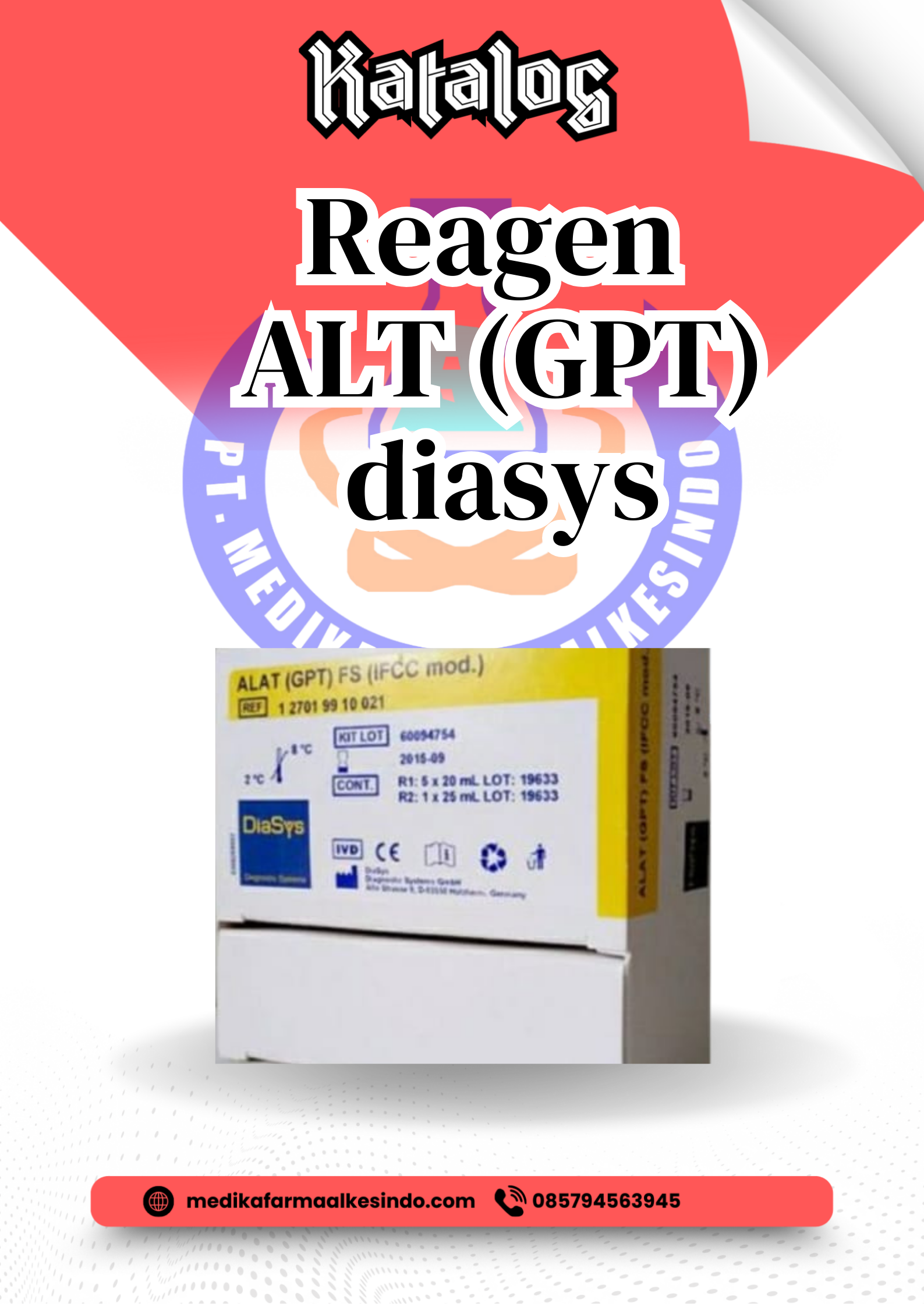 ALAT (GPT) FS (IFCC mod.) adalah reagen diagnostik klinik dari DiaSys Diagnostics yang digunakan untuk menentukan kadar enzim alanine aminotransferase (ALAT)—yang juga dikenal sebagai Glutamic Pyruvic Transaminase (GPT)—secara kuantitatif pada serum atau plasma heparin manusia menggunakan metode fotometrik pada sistem laboratorium otomatis.