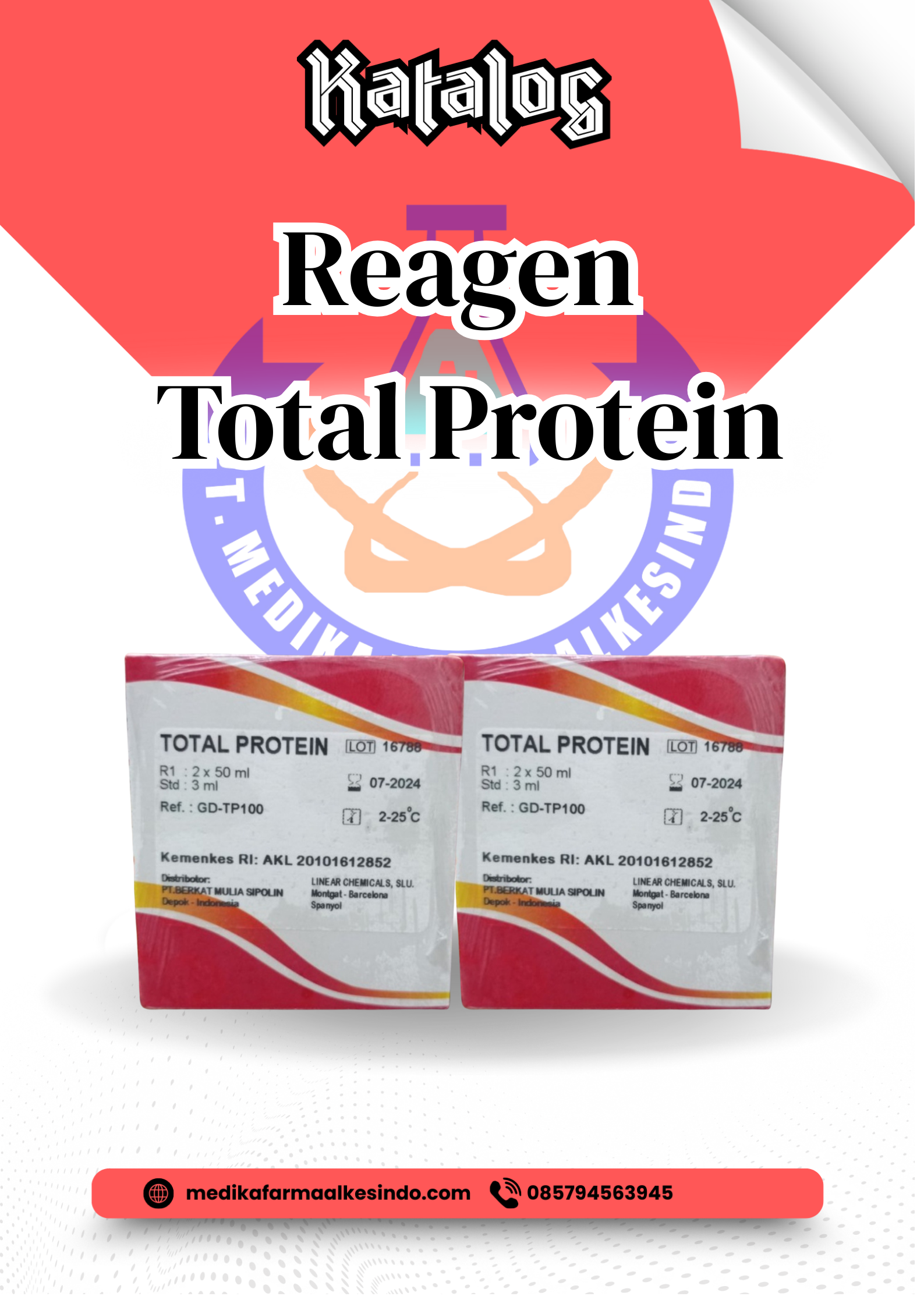 Reagen Total Protein merk Glory Diagnostics adalah reagen laboratorium untuk uji kadar total protein dalam sampel serum atau plasma darah. Produk ini digunakan di laboratorium klinik, rumah sakit, atau fasilitas diagnostik untuk mendukung pemeriksaan profil biokimia pasien.